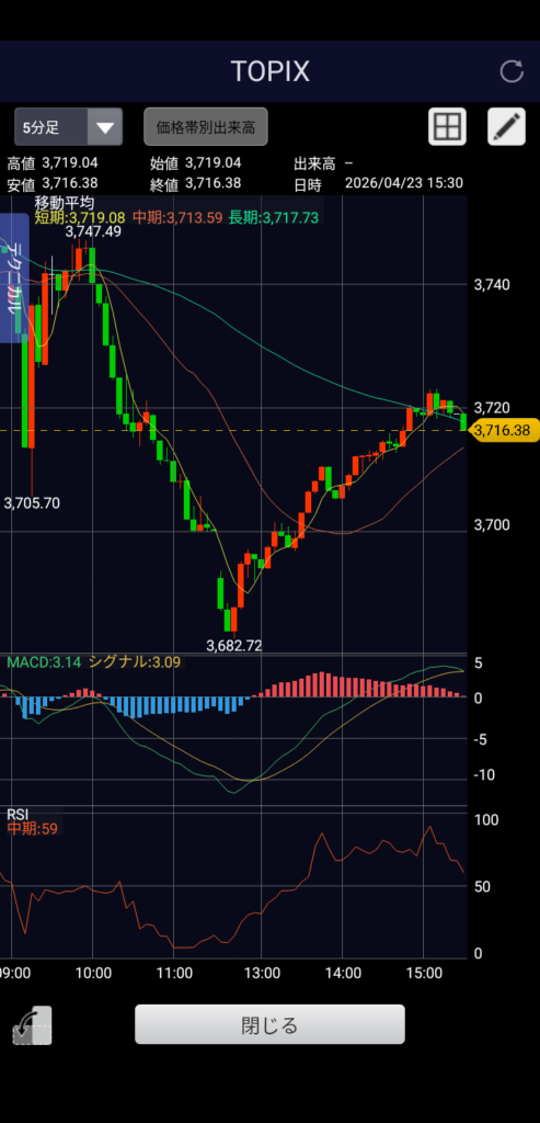 ・TOPIX 3,716.38 前日比-28.61(-0.76%)