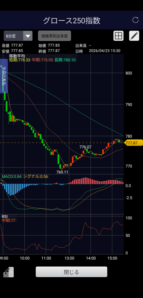 ・グロース250 777.87 前日比-23.95(-2.99%)