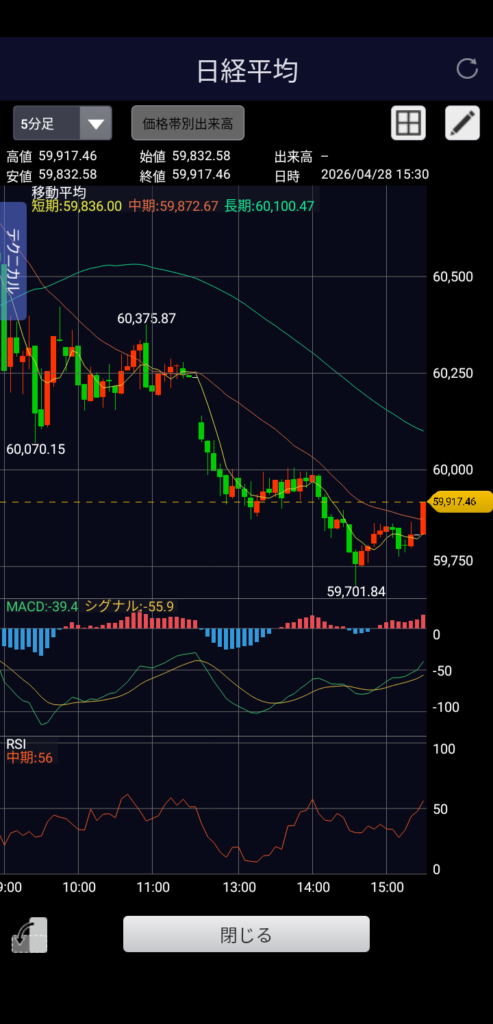・日経平均 59,917.46 前日比-619.90(-1.02%)