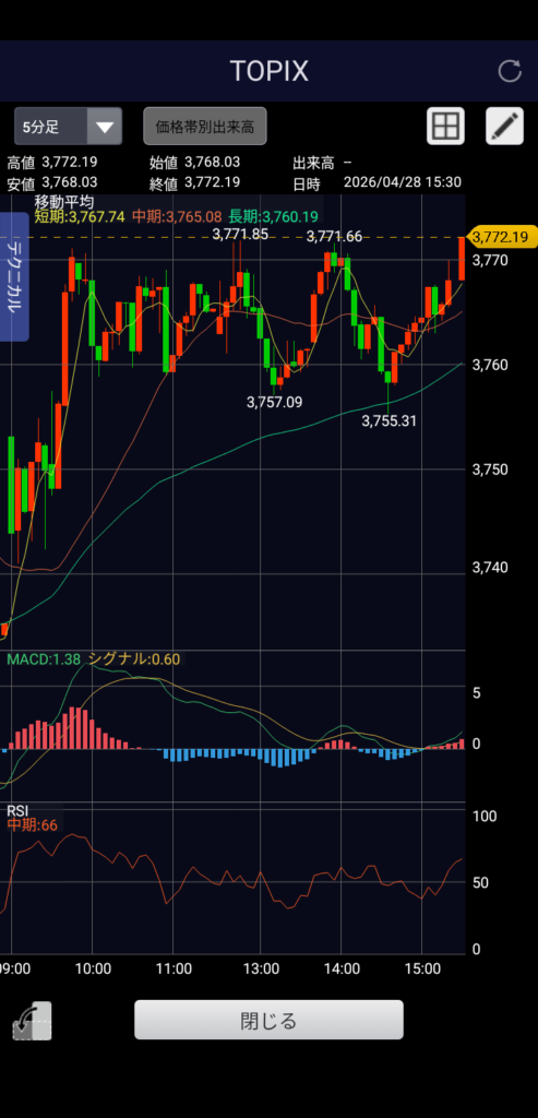 ・TOPIX 3,772.19 前日比+36.91(+0.99%)