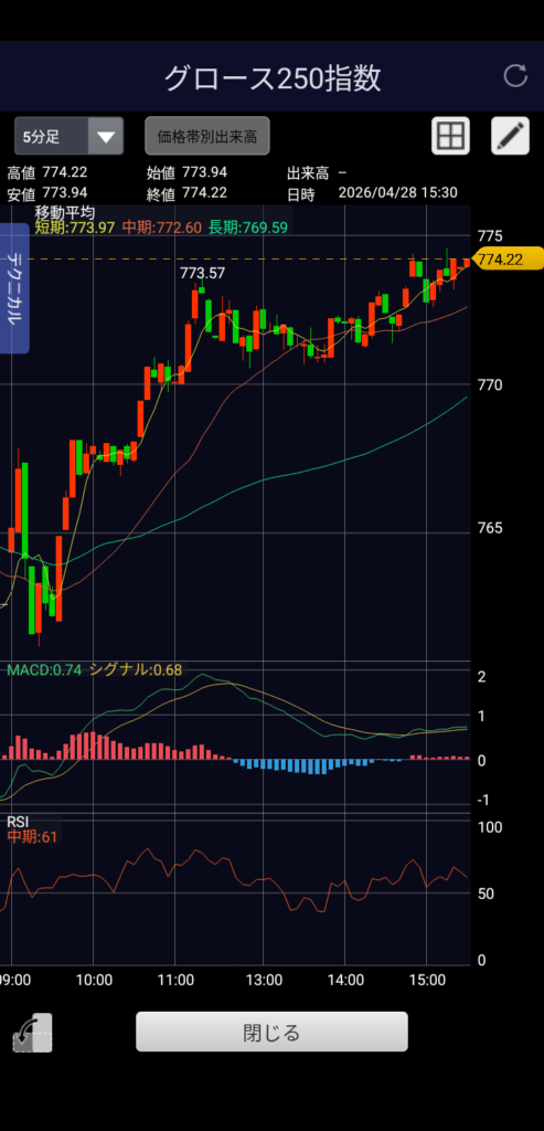 ・グロース250 774.22 前日比+11.63(+1.53%)